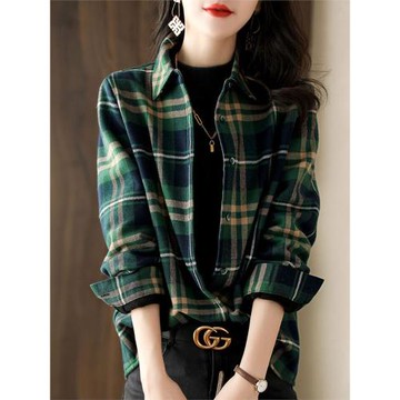 格子襯衫女長袖春秋新款大碼寬松顯瘦小個子內搭疊穿打底襯衣上衣
