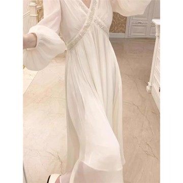 白水女 溫柔紗紗裙 網紗連衣裙女初秋氛圍感穿搭韓系氣質顯瘦裙子