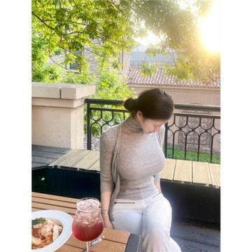 韓版女明星氣質優雅氣質高領修身無袖背心長袖開衫茶系穿搭套裝