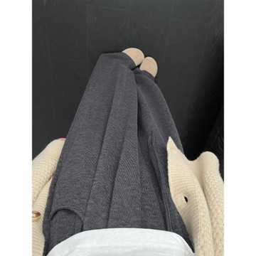 深灰色糯米休閑褲女秋冬加絨胖妹妹mm寬松顯瘦梨型身材垂感闊腿褲