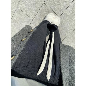不規則假兩件菱格針織開衫女秋冬季外搭法式復古寬松斗篷披肩外套