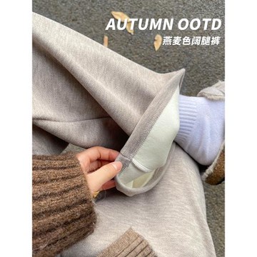 燕麥色糯米褲女秋冬2026新款加絨高腰直筒垂感慵懶羊絨寬松闊腿褲
