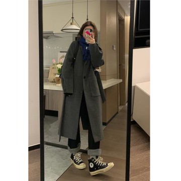 寬松氣質百搭時尚中長款大衣女士秋冬款小個子雙面毛呢大衣