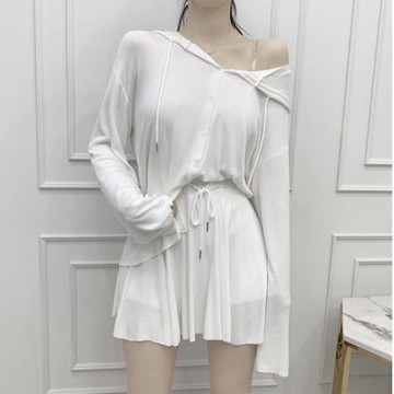 韓國東大門2025春季新款慵懶休閑連帽系扣開衫防走光裙褲時尚套裝
