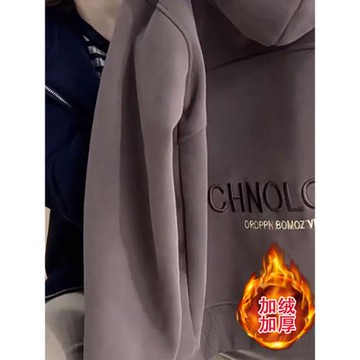 減齡漂亮洋氣外套女2025秋冬季爆款歐貨加絨加厚休閑連帽衛衣開衫