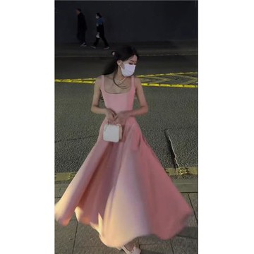 法式氣質高級粉色吊帶連衣裙夏裝2025夏季新款禮服長裙裙子女裝春