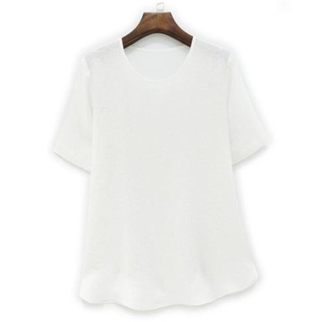 2025新品桑蠶絲冠樂皺短袖上衣大碼真絲衫浮雕紋立體圓領圓擺開叉