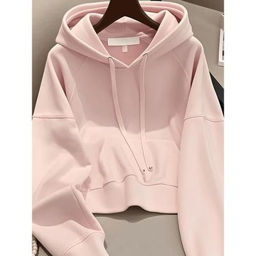 粉色連帽衛衣外套高級感春秋女款2025年新款小個子純色短款女上衣