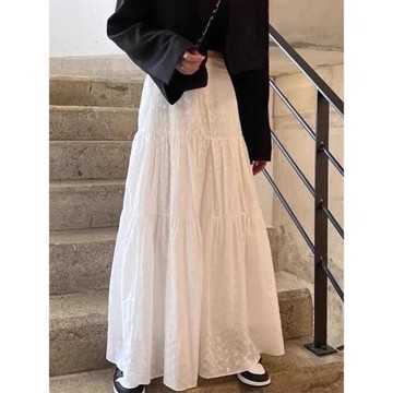 韓國chic春季溫柔氣質刺繡提花設計高腰顯瘦百搭A字半身裙長裙女