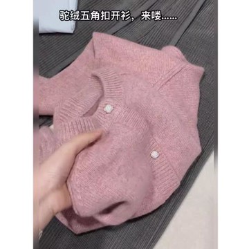 杭州四季青女裝廣州十三行粉色V領針織開衫外套秋冬慵懶加厚毛衣