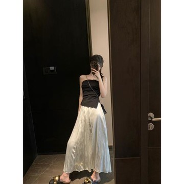 FENG甜甜人魚公主高腰半身裙女夏季仿醋酸顯瘦遮跨飄逸氣質長裙子