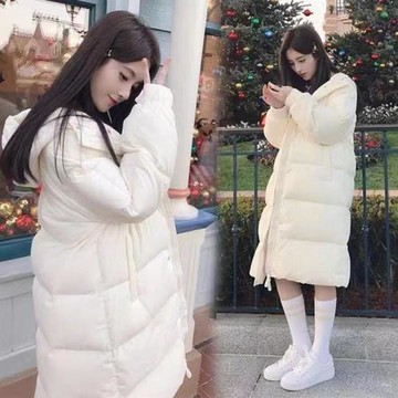 鞠婧祎明星同款2025冬季新款白色長款過膝棉衣寬松羽絨棉棉服女潮