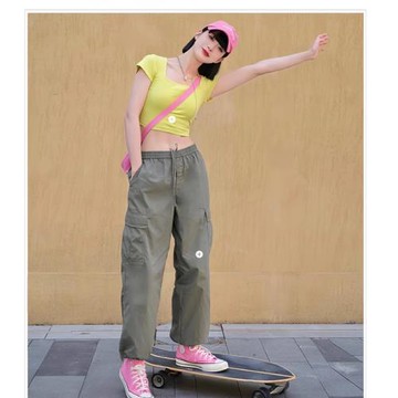 2025年夏季女士工裝褲褲子休閑褲寬松直筒高腰束腳薄款顯瘦