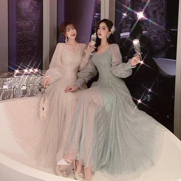 女神范閃閃亮片仙女裙2025新款宴會超仙氣質顯瘦燙金網紗連衣裙女