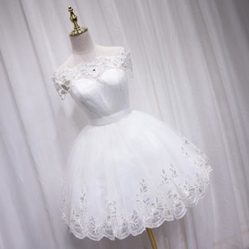 白色一字肩甜美年會晚禮服女顯瘦氣質成人畢業禮生日派對主持晚裝