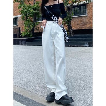 MNVZ牛仔褲女2025年新款高腰拖地褲子高街ins潮闊腿褲寬松直筒褲