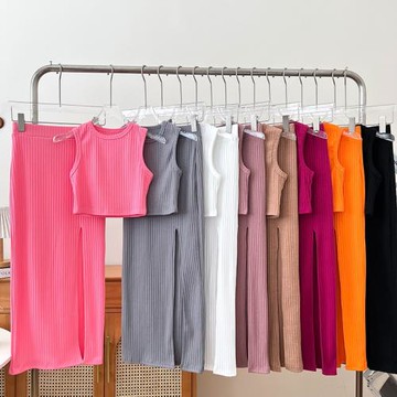 點我下載性感無袖短款露臍背心上衣+高腰顯瘦中長款開叉半身裙兩件套女