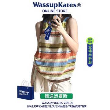 2026春秋夏季條紋鏤空針織吊帶背心女夏季馬甲慵懶風寬松外穿無袖