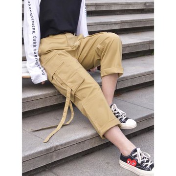 前大口袋打褶工裝長褲 兩色售 M/L