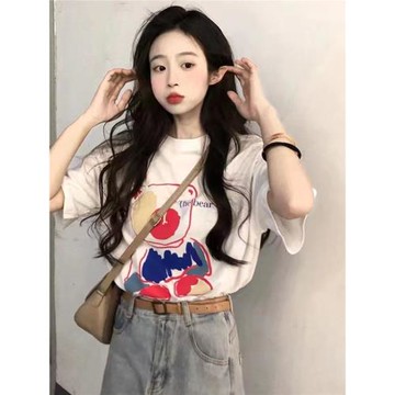 純棉美式印花寬鬆短袖上衣