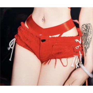 性感低腰側邊綁帶牛仔褲女辣妹短褲熱褲緊身褲子酒吧夜店
