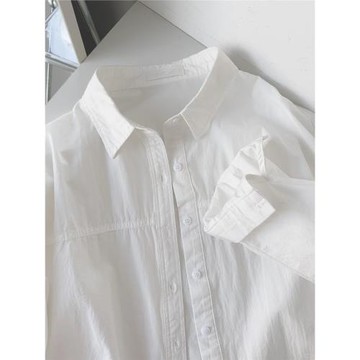 日系白色純棉防曬長袖襯衫女夏季小個子寬松顯瘦襯衣疊穿休閑上衣