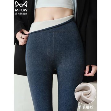 貓人牛仔鯊魚褲女外穿2025新款秋冬季羊絨高腰緊身顯瘦打底褲加絨