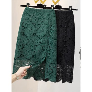 法式重工蕾絲鏤空勾花半身裙女春季高腰顯瘦裙子中長款A字裙381G