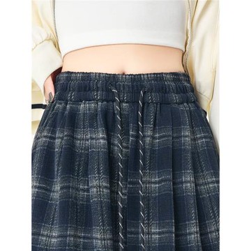 日系格子半身裙女秋冬毛呢百褶裙學院風重工中長裙氣質松緊腰傘裙