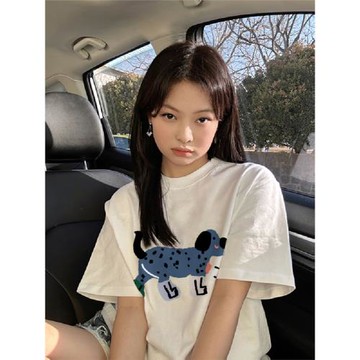 純棉白色正肩短袖t恤女2025新款爆款夏季美式趣味小狗半袖上衣潮