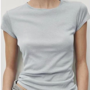 西班牙女裝夏季新款極簡風清新修身親膚純棉羅紋圓領短袖T恤女