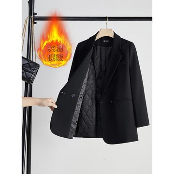 黑色夾棉西裝外套女冬季加厚加棉氣質正裝職業裝工作服小西服套裝