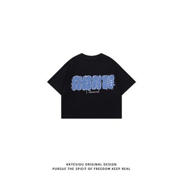 KKyesiou美式復古潮牌刺繡磨毛短袖T恤女設計感甜辣日系短款上衣