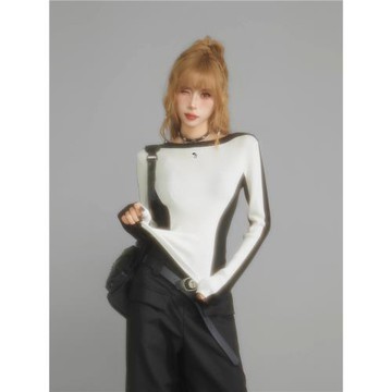 白色長袖針織衫女秋冬冬季設計感小眾修身緊身毛衣內搭打底衫上衣