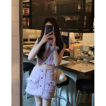 點我下載名媛小香風套裝女夏季2025新款短款無袖上衣高腰顯瘦A字裙兩件套