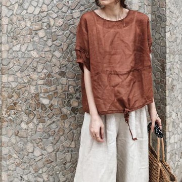 亞麻 | 圓領短袖上衣 奶白色