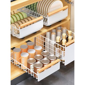 廚房碗碟收納架櫥柜內置物架抽屜式拉籃抽拉碗籃碗盤瀝水碗架碗柜