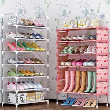 德利生活 不鏽鋼鞋架 7層 PP加厚接口 粉色 1個