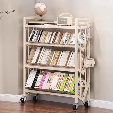 可移動書架置物架兒童玩具收納架閱讀家用小推車帶輪學生簡易書柜