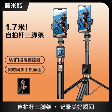 藍米酷2025款投屏自拍桿1.7米手機雙藍牙遙控拍照三腳架