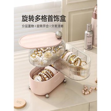 點我下載桌面收納盒可旋轉分層帶分格頭繩化妝品數據線防塵兒童發飾儲物盒