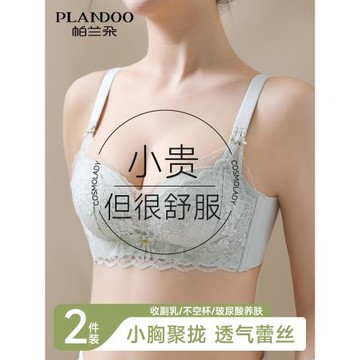 內衣女士小胸聚攏顯大薄款無鋼圈收副乳防下垂蕾絲文胸罩2024新款