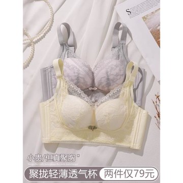 少女士內衣無鋼圈收副乳小胸罩厚聚攏防下垂薄款性感蕾絲文胸套裝