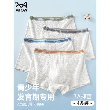 貓人內褲男生青少年初高中學生發育期大童A類純棉男士款平角短褲