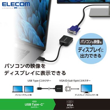 ELECOM視頻轉換器Type-C轉VGA接頭電腦顯示器連接線高清轉接線適用iPad電視投影儀即插即用