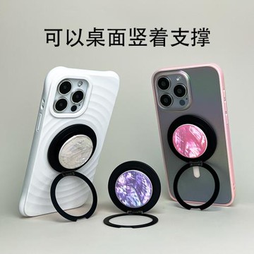 天然貝殼滴膠新款氣囊支點二合一磁吸手機支架折疊支點一體指環扣