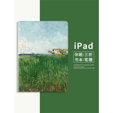 文藝油畫360旋轉iPad Air2保護套mini6平板殼pro11筆槽10第十代9適用于蘋果air4亞克力3迷你5皮套12.9寸書本7
