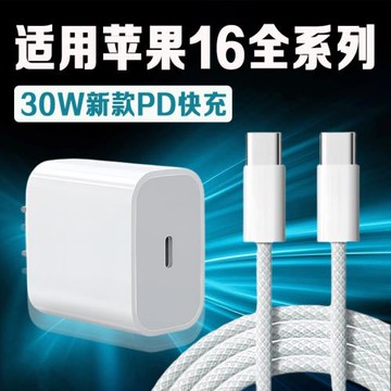 適用蘋果iPhone16充電器30WPD快充蘋果16pro手機充電器iphone16Pro max/16plus充電器蘋果16充電頭編織2米線