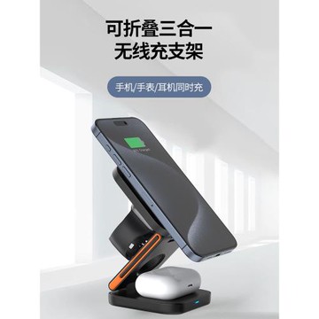 新款三合一磁吸無線充電器15W適用于蘋果手機手表耳機折疊式無線充支架