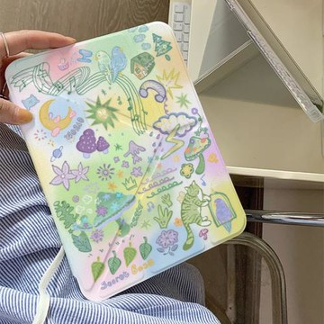 彩色暈染夢幻叢林Y+三折適用ipad11保護套air7/6新款ipad10帶筆槽11寸防摔10.2/10.9蘋果平板保護套mini7女